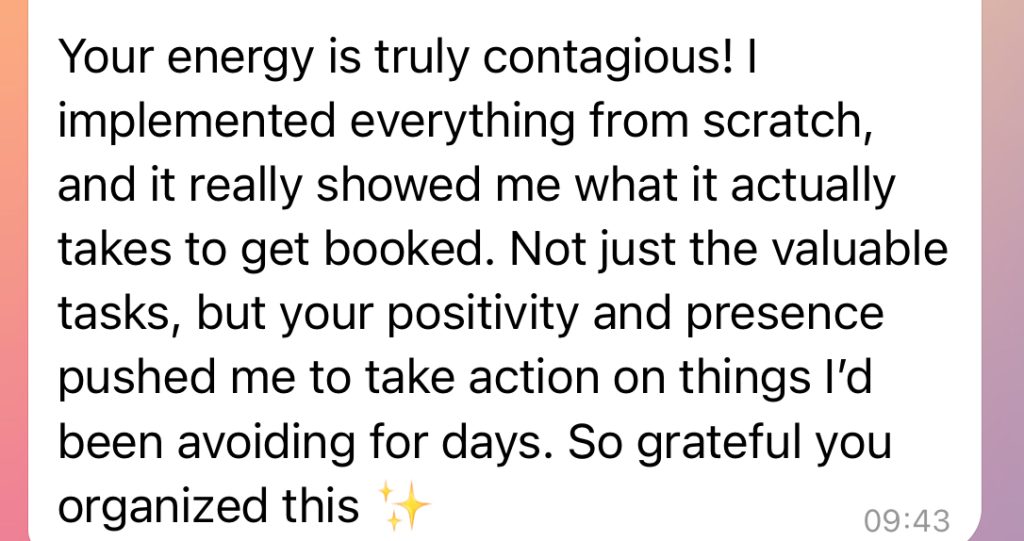 I stopped hustling, embraced a new rhythm, and doubled my income while working fewer hours. The biggest win? I found my natural flow again and finally built a business that feels both successful and aligned with who I am.”